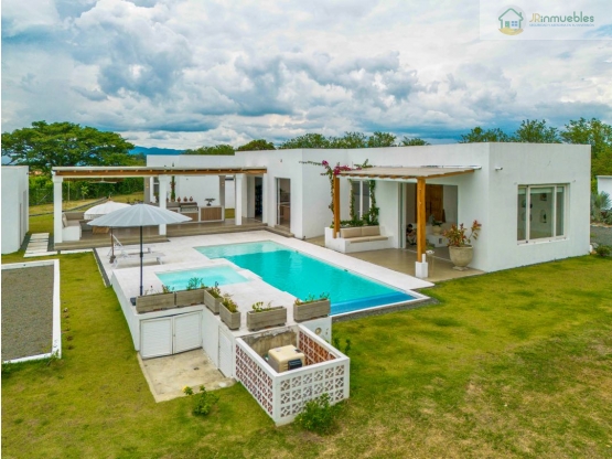 Descubre esta espectacular propiedad campestre, donde el diseño arquitectónico contemporáneo se fusiona con la naturaleza del paisaje vallecaucano. Ubicada en una zona de clima templado y rodeada de montañas, esta casa de una planta ofrece amplitud, iluminación natural y acabados de alto nivel que evocan una estética mediterránea moderna.